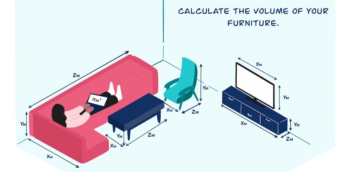 Don’t worry, it’s still not difficult to calculate the volume of your furniture in cubic metres: just measure its length, width, and height, and multiply these values together.